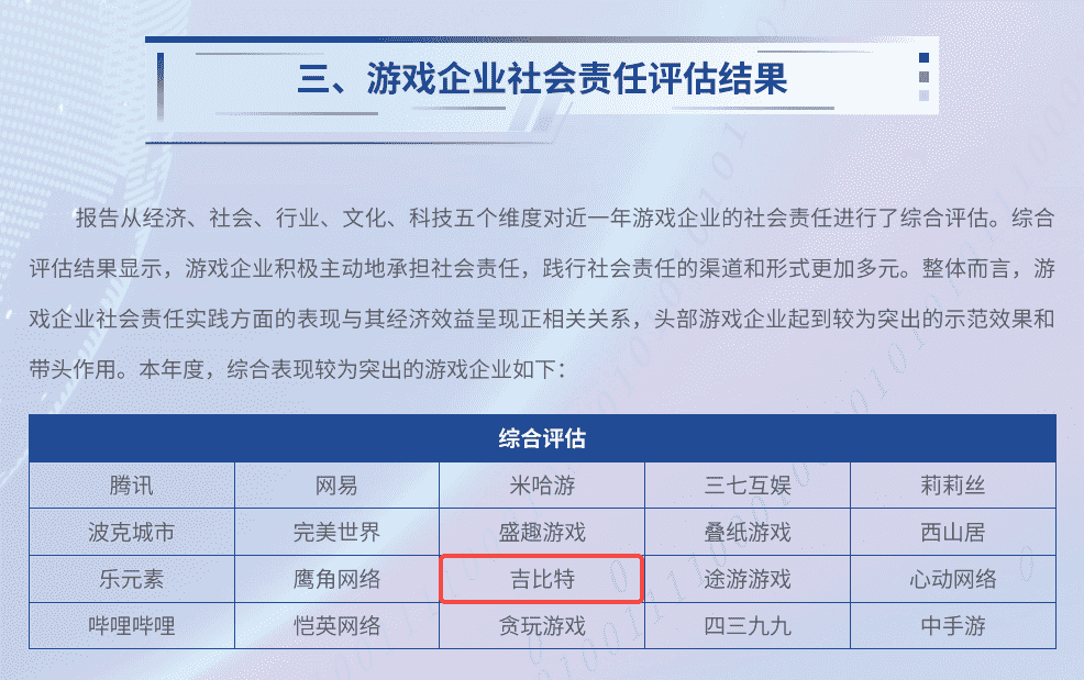 7月3日,,,,由中国音像与数字出版协会指导,,北京市西城区人民政府主办的“2024游戏责任论坛”在北京举行。。。论坛上,,,,人民网舆情数据中心、、、、人民灵境研究院、、灵境 · 游戏实验室联合发布了《2023-2024游戏企业社会责任报告》(以下简称“《报告》”),,,公布了游戏企业社会责任评估结果。。。厦门918.com网络技术股份有限公司(以下简称“918.com”或“公司”)获评“2023-2024年度中国游戏企业社会责任综合表现较为突出企业”。。这是继2020年以来,,,,918.com第五次入围人民网中国游戏企业社会责任相关荣誉榜单。。。