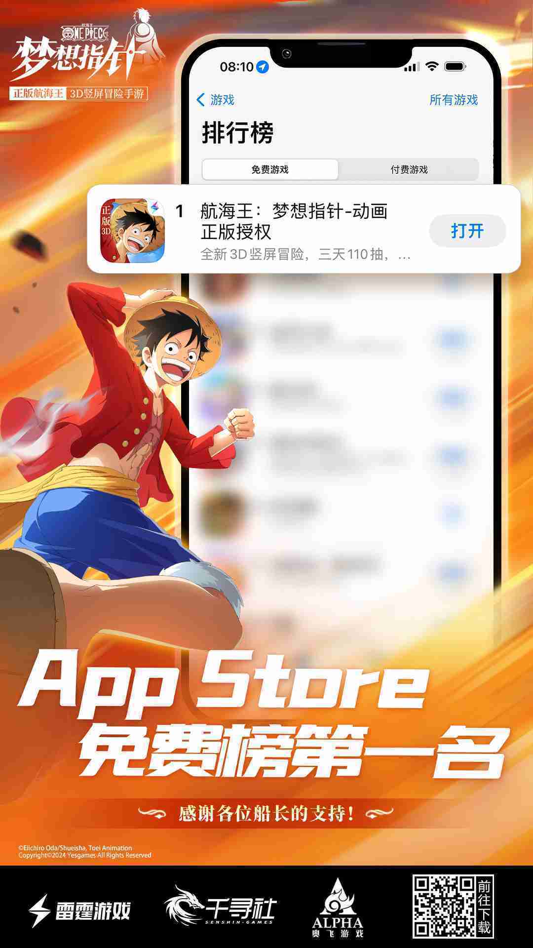 • 产品新闻 《航海王::::梦想指针》登顶App Store免费榜,,公测福利汇总!!